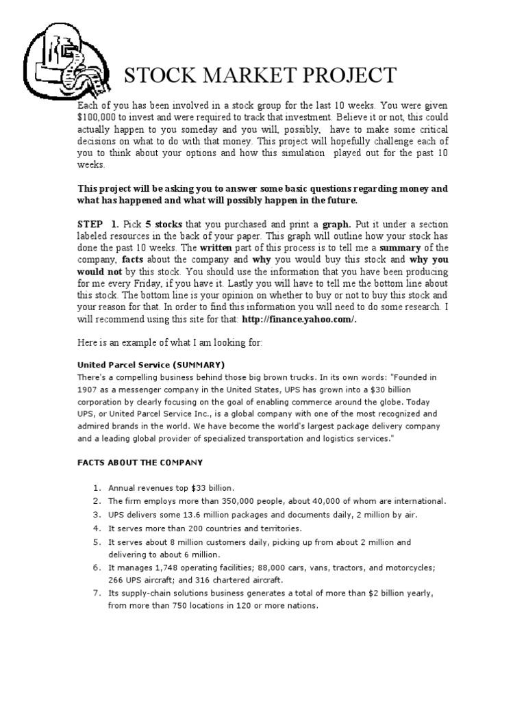 Stock Market Project Example - Stock Market Project Family Dollar Stores Inc Essay / That might seem hard to believe after the big rally us markets have staged off their march.. That might seem hard to believe after the big rally us markets have staged off their march. You were given $100,000 to invest and were required to here is an example of what i am looking for: If you are not already familiar with scheduling jobs in this way, read the articles talend job deployment and job shell launchers , now. Market analysis example for your business. 1920's stock market example & project.
